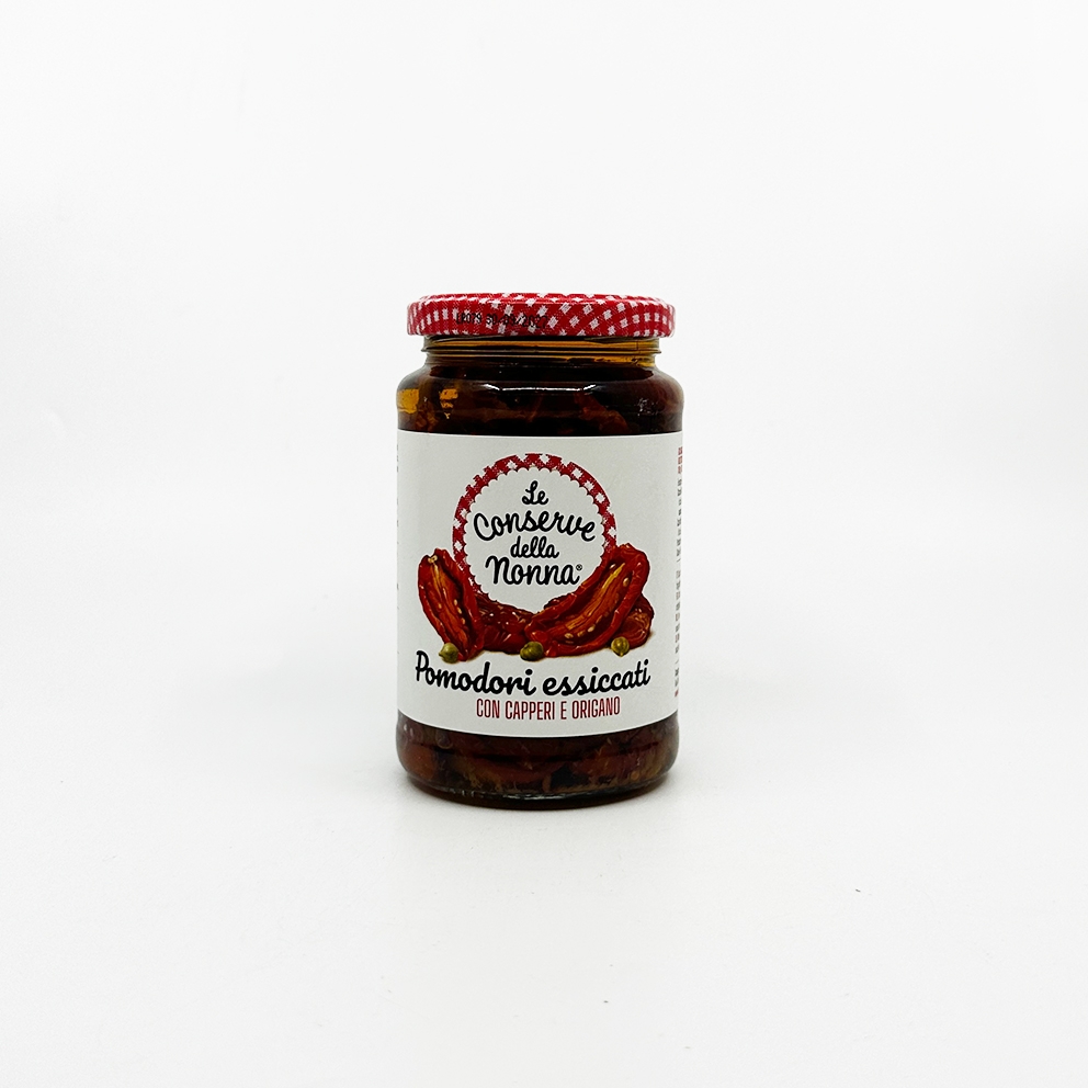 Szárított paradicsom napraforgóolajban, kapribogyóval és oregánóval.